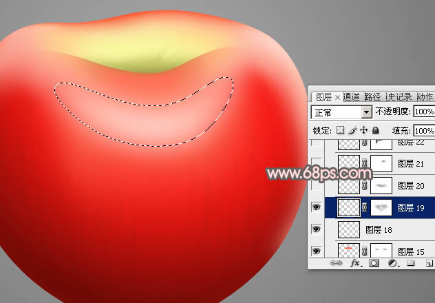 20、新建一个图层,用钢笔勾出中间的反光区域,羽化20个像素后填充淡红色:#FFE3DC,取消选区后添加图层蒙版,用透明度较低的黑色画笔把边缘涂抹自然。