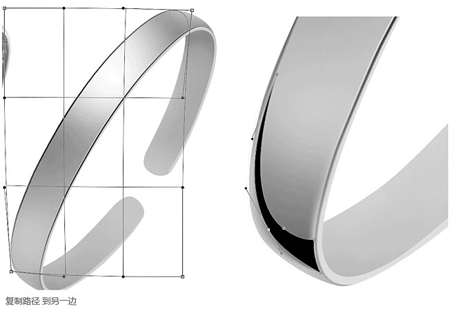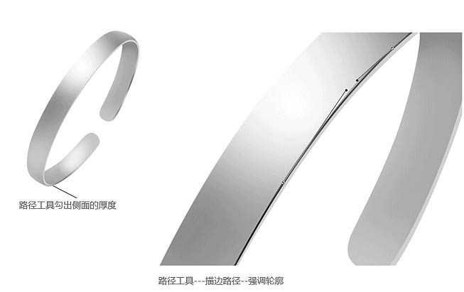 4、路径工具勾出侧面的厚度,描边路径,强调轮廓。