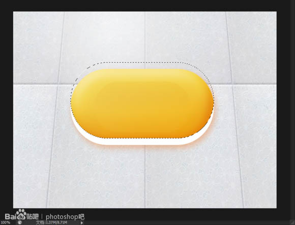 7、载入肥皂主体的选取。新建一层填充白色,此时不要取消选区,把选区向上移动一些,然后按键盘的Delete删除,执行高斯模糊,数值为10.