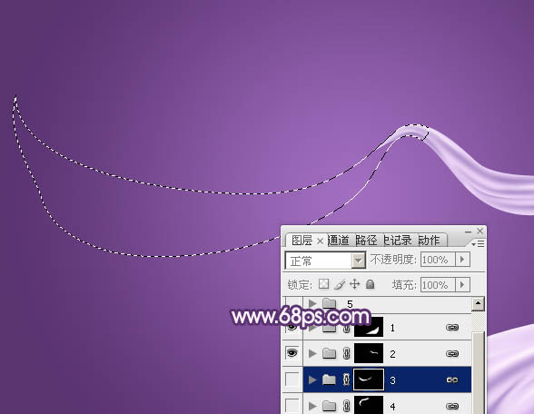 16、在背景上面新建一个组,同上的方法制作第三段绸带,过程如图22