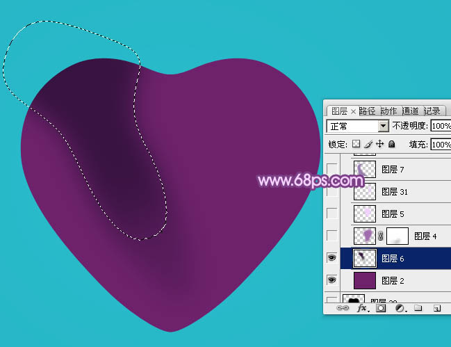 3、把原心形图层隐藏,在组里新建一个图层填充暗紫色:#6D226B作为底色。