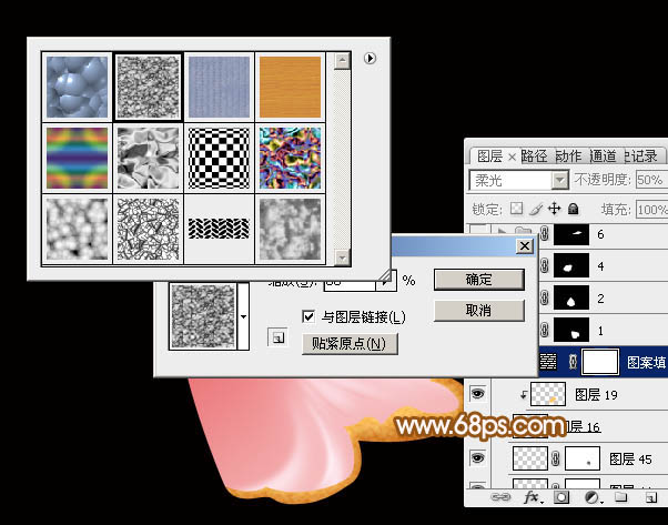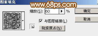 12、创建图案填充图层,选择默认自定的图案如图17,然后把缩放改为:60%,确定后把图层混合模式改为“柔光”,不透明度改为:50%,效果如图19。