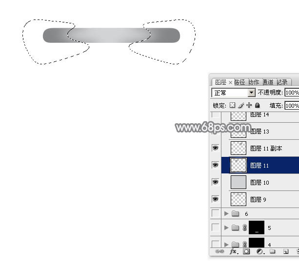 5、用钢笔勾出两端的暗部选区,羽化6个像素后填充稍深的灰色。