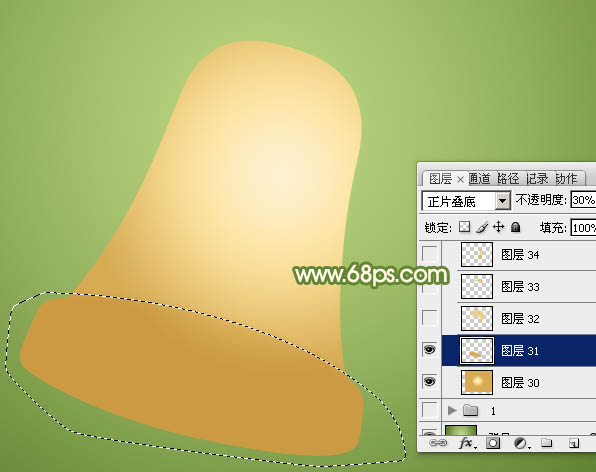 + J 把选区部分的色块复制到新的图层,混合模式改为“正片叠底”,不透明度改为:30%,效果如下图。