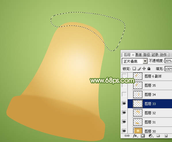 4、用钢笔勾出底部的暗部选区,羽化5个像素后按Ctrl