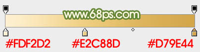 + Alt + G 创建剪贴蒙版,然后在当前图层的下面新建一个图层。先用钢笔勾出顶部的暗部选区,羽化4个像素后填充黄褐色:#D5AC59,混合模式改为“正片叠底”,如下图。