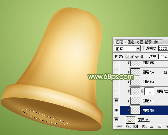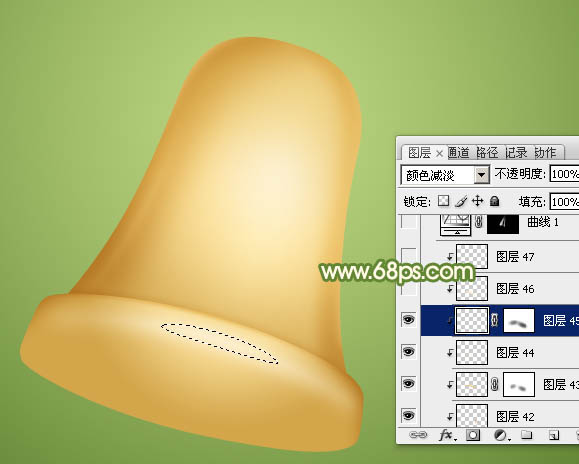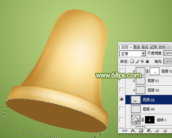 14、在当前组的最上面新建一个图层,用钢笔勾出铃铛的开口部分选区填充暗红色:#875D21,如下图。