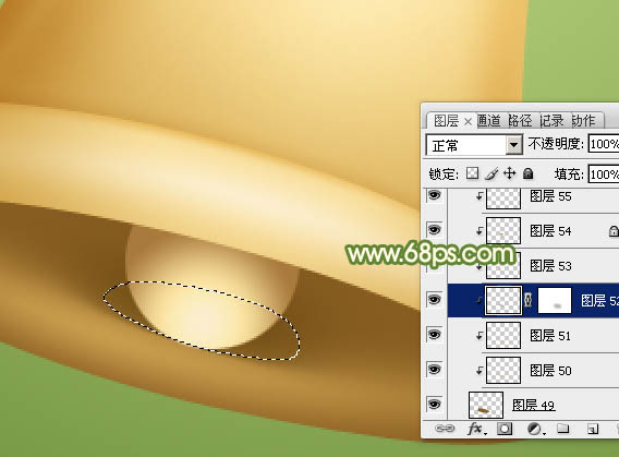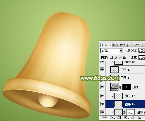 19、在背景图层上面新建一个组,同上的方法制作铃铛的顶部构件,如下图。