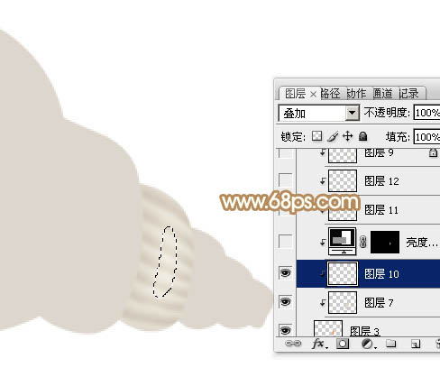 9、用钢笔勾出中间部分的高光区域,羽化3个像素后按Ctrl