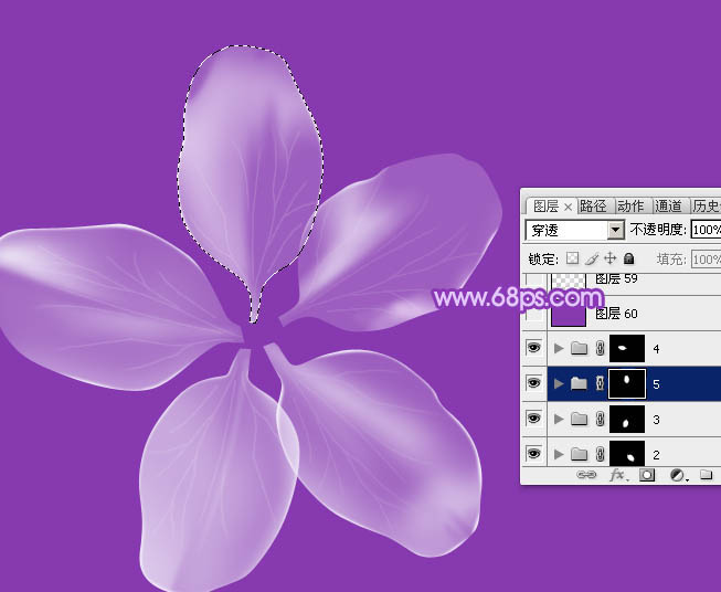 18、新建组,同样的方法制作第三片至第五片花瓣,过程如图21