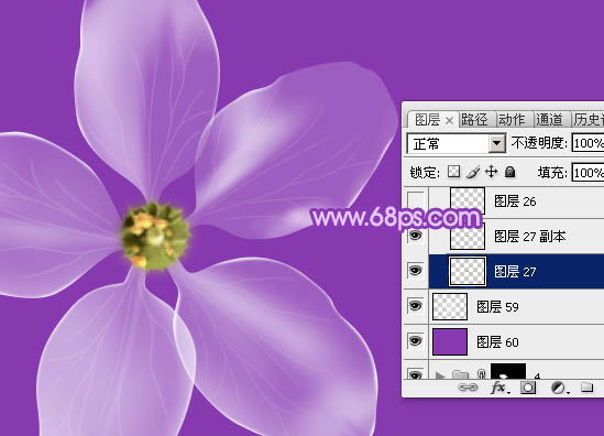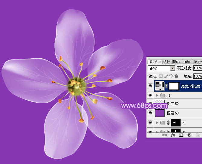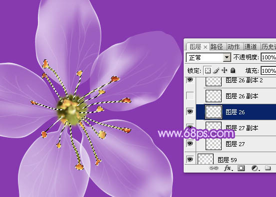 19、在图层的最上面新建组,同上的方法制作花蕊部分,如图24,25。