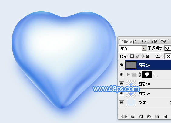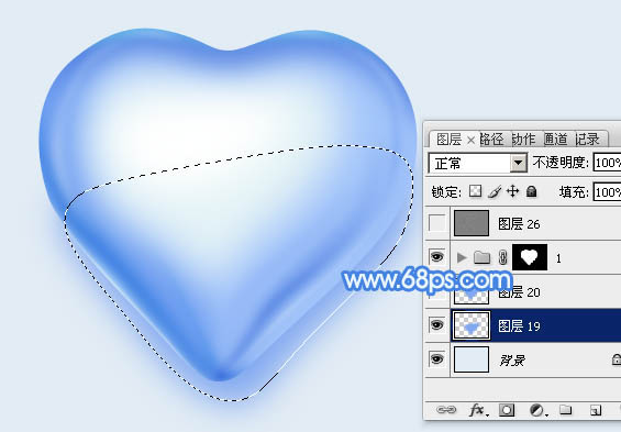 18、在背景图层上面新建一个图层,用钢笔勾出投影部分的选区,羽化20个像素后填充蓝色:#81A8F0,如下图。