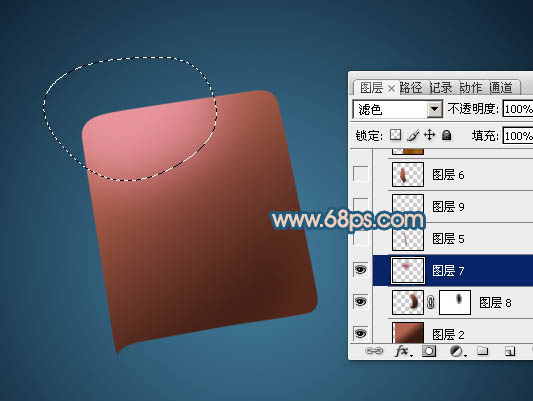 + J 把选区部分的色块复制到新的图层,混合模式改为“滤色”,效果如下图。