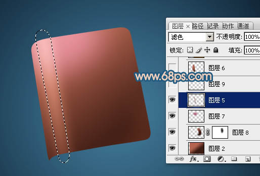 15、回到渐变图层,用钢笔勾出左边边缘高光选区,羽化4个像素后按Ctrl