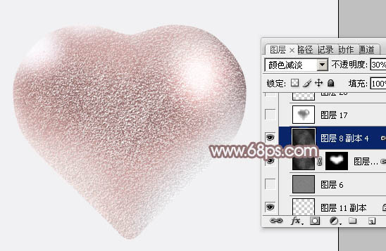 + Shift + ]置顶,混合模式改为“颜色减淡”,不透明度改为:30%,效果如下图。