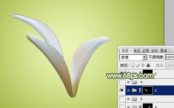 17、在当前组下面新建一个组,同上的方法制作其它花瓣,过程如图23