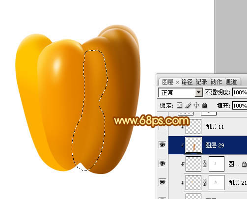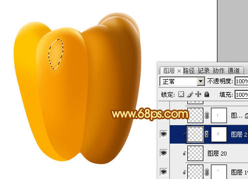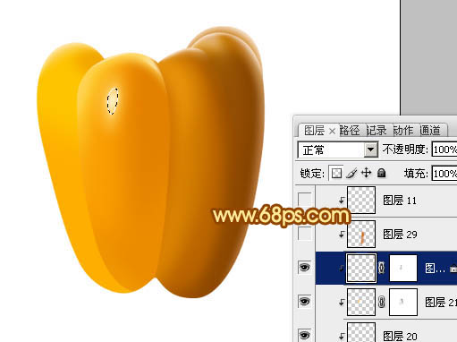 16、新建一个图层,同上的方法制作中间的反光区域,如图27,28。