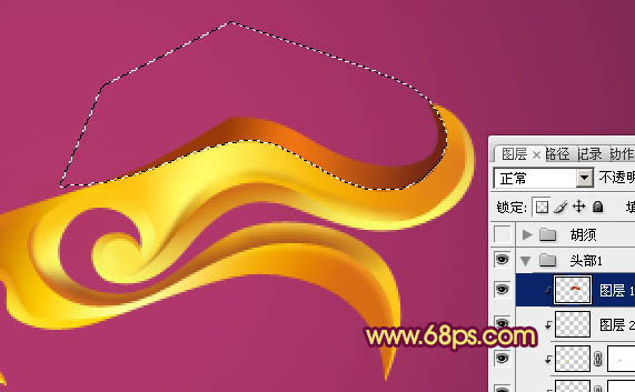 12、在当前组下面新建一个组,命名为“头部1”,新建一个图层,用钢笔勾出轮廓,拉上渐变色,大致效果如下图。