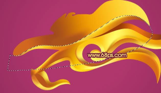 + Alt + G 创建剪贴蒙版,然后在当前图层下面新建一个图层,先来制作底部的立体面。用钢笔勾出选区后填充黄色,暗部用画笔涂上黄褐色。