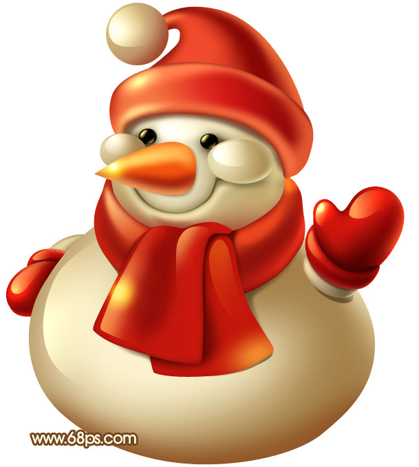 1、制作之前,我们先把雪人拆分一下,分为头、围巾、躯干三大部分,如下图。
