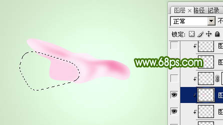 10、新建一个图层,同上的方法勾出顶部暗部选区,适当羽化后填充稍暗的粉红色,然后再逐步加深,过程如图12,13。花瓣大致完成的效果如图14。