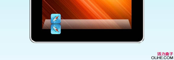 9、把“dock”图层不透明度降低为58%。我们继续制作屏幕顶部的信息栏并且添加ipad图标。
