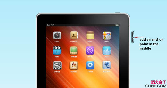 19、使用钢笔工具为按钮C增加锚点如下图所示,然后使用直接选择工具选中锚点,按左方向键向左侧移动3个像素。最后把所有按钮都置于“border”层的下方。