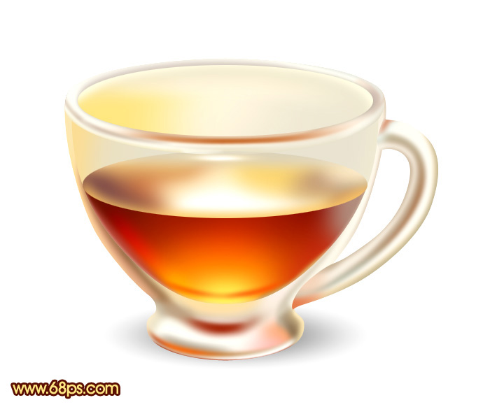 玻璃茶杯的构成相对较为简单,大致分为杯身、液体及手柄等几个大的部分。刻画的时候先从外而内,从下至上分步来制作。每一部分都有暗调和高光部分,处理的时候要注意好整体色调。
