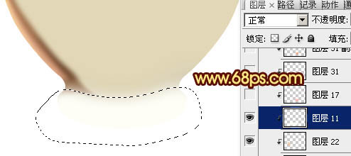 6、新建一个图层,再来处理底座的高光和暗调,先用淡黄色涂出高光部分如图9,然后用其它颜色渲染暗调和高光,过程如图10,11。