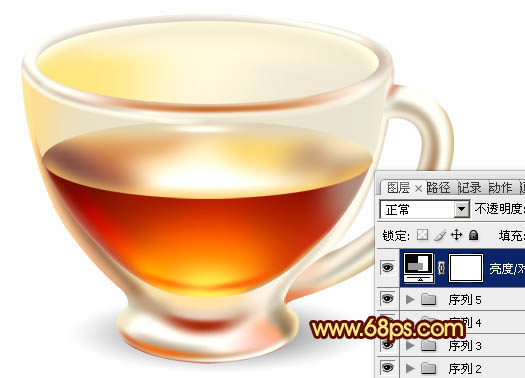 14、杯子大体已经刻画完成。再创建亮度/对比度调整图层,适当加大整体对比度,参数设置如图24,效果如图25。