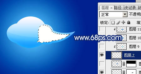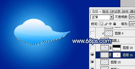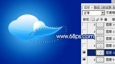 5、新建一个图层,用钢笔勾出云朵底部反光部分的选区,填充稍亮一点的蓝色。