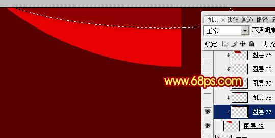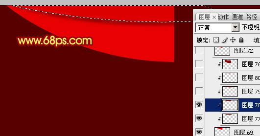4、新建一个图层,用钢笔工具勾出下图所示的选区,羽化2个像素后填充颜色:#DD0000,效果如下图。