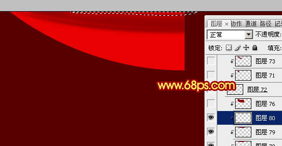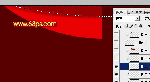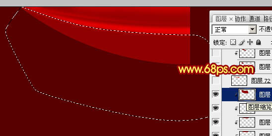 5、新建一个图层,用钢笔勾出下图所示的选区,羽化3个像素后填充颜色:#950000。