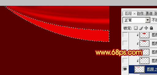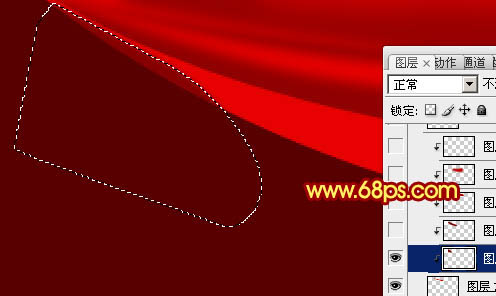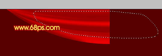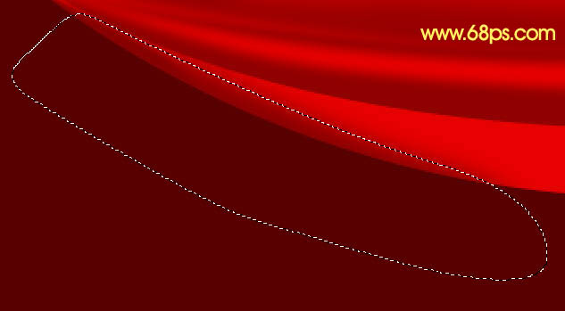 12、新建一个图层,用钢笔勾出下图所示的选区,羽化6个像素后填充刚才设置的暗红色。