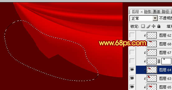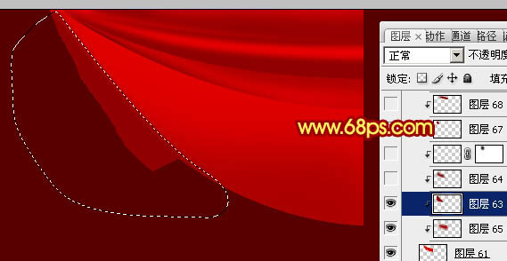 18、新建一个图层,用钢笔勾出下图所示的选区,羽化1个像素后填充颜色:#9D0000,取消选区后加上图层蒙版,用黑色画笔把底部稍微涂抹一下,效果如下图。
