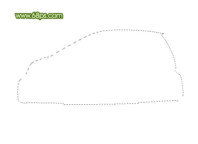 * 600像素的文档,背景选择白色。新建一个图层命名为“车身”,用钢笔勾出汽车轮廓路径,转为选区如下图。