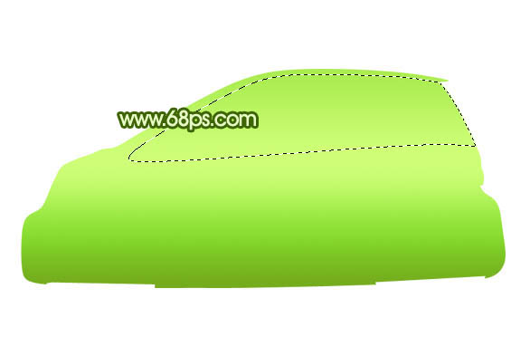 3、新建一个图层,用钢笔勾出图4所示的选区,选择渐变工具,颜色设置如图5,拉出图6所示的线性渐变,拉好渐变后不要取消选区。