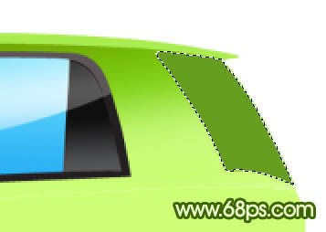 12、新建一个图层,用钢笔勾出图23所示的选区,填充深绿色:#669E1F。