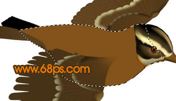 20、在“轮廓”图层上面新建一个图层,用钢笔勾出图25所示的选区填充颜色:#81521A,选择加深工具把边缘部分加深一下,效果如图26。