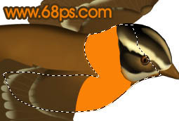 21、在当前图层下面新建一个图层,用钢笔勾出图27所示的选区,填充颜色:#F88105,锁定图层后用黑色画笔涂上暗部,效果如图28。