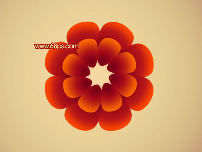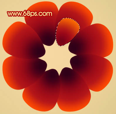 8、新建一个图层,用钢笔勾出图16所示的较小花瓣选区,拉上图17所示的径向渐变。取消选区后按上面的方法复制,效果如图18。