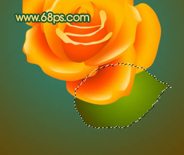 12、在背景图层上面新建一个图层,用钢笔勾出一片叶子的选区拉上绿色至深绿的径向渐变,如图26。新建一个图层,用钢笔勾出半边树叶的路径拉上同样的渐变色,如图27。新建一个图层制作出叶脉及水珠,效果如图28。