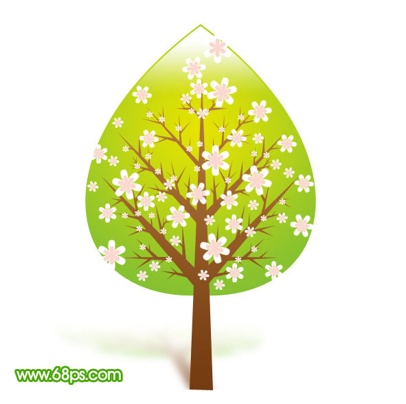 * 650像素的文档,背景填充白色。新建一个图层,用钢笔勾出树叶部分的路径,转为选区如下图。
