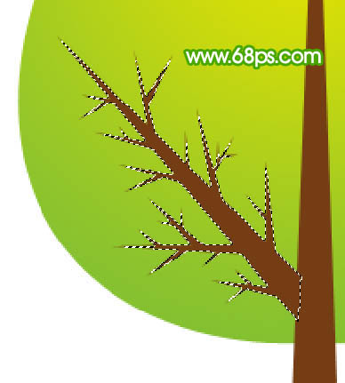 5、新建一个图层,用钢笔勾出树枝部分的选区,填充颜色:#763C14,如图8,9。