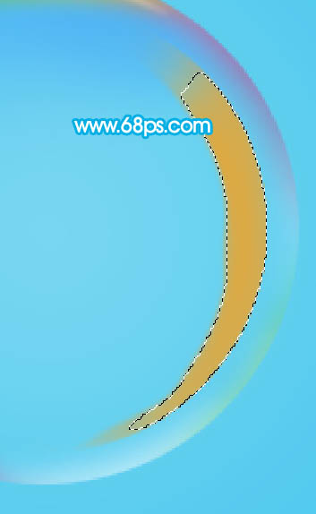 7、新建一个图层,用钢笔勾出下图所示的选区,填充颜色:#DAAA46,顶部用橡皮擦点透明效果。锁定图层后用不同的颜色涂上彩色,效果如图9,10。