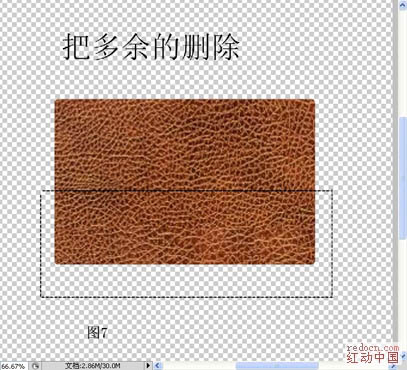 9、用矩形选框工具选取,纹理的下半部分,按Delete删除。
