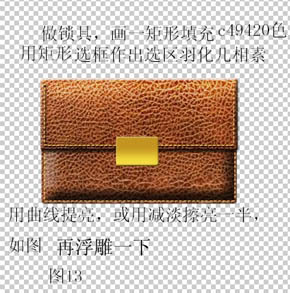 15、做锁具,画一矩形填充颜色:#c49420,用矩形选框做出选区,适当的羽化后用曲线提亮,或用减淡工具擦亮一半,如下图。确定后再加上浮雕效果。