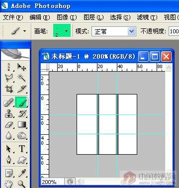 2、放大画布,拉出标尺和参考线,先将参考线的水平和垂直均设在20、40像素的位置,用2个像素的画笔(100硬度和不透明度),按住Shift键,延参考线画出直线。