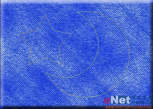 5、单击图层控制面板下方的“添加图层蒙版”按钮,为牛仔布图层添加图层蒙版。然后选择工具箱中的“自定形状”工具,在形状面板中选择两个形状路径,在画面中绘制,效果如图08所示。