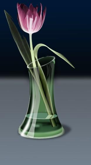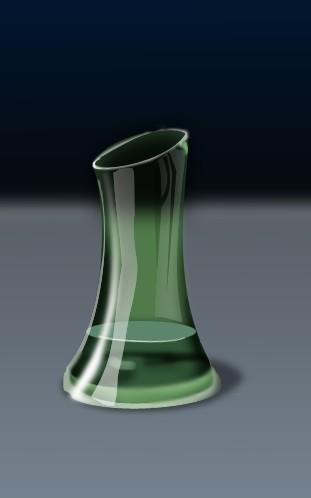 11、再对玻璃瓶局部进行细节调整,添加一点环境光反射效果,和添加一些阴影效果,这样花瓶的效果就出来了,制作环境光反射方法先填充白色,然后加图层蒙板,在图层蒙板上填充灰色,这样做出来的反射更有光泽,如果用调整不透明度来做的话就没有了那光泽,效果就会差很远,这点非常重要。